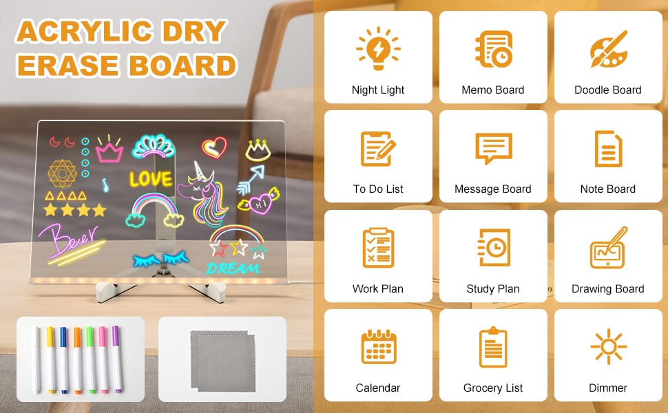 كتابة سلسة استمتع بتجربة كتابة سلسة على سطح الأكريليك عالي الدقة. أطلق العنان لإبداعك مع أقلام الألوان المتاحة، وحوّل أفكارك إلى واقع ملموس.